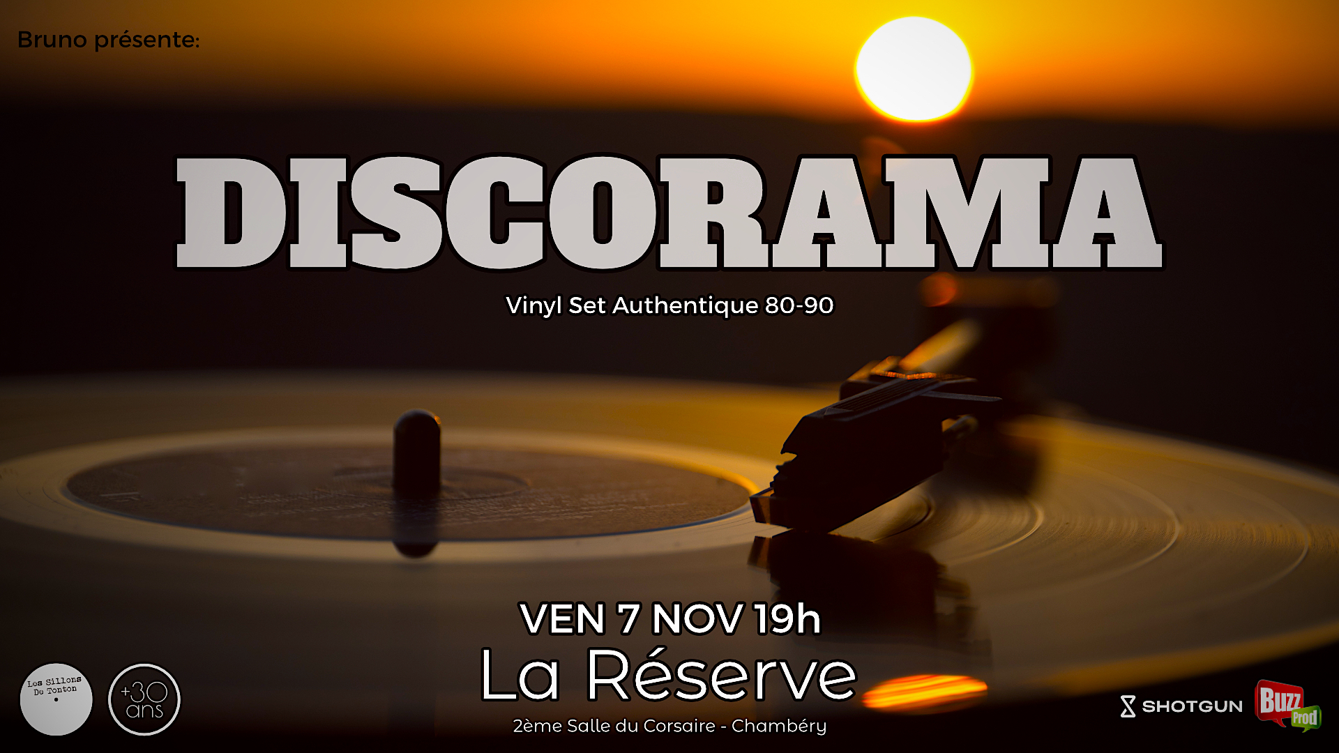 🪩 DISCORAMA – Le rendez-vous des +30 ans 🪩 📍 La Réserve – Le Corsaire, 18 avenue des Ducs de Savoie, Chambéry 📅 Vendredi 7 Novembre – 19h à 1h Bruno des Sillons de Tonton vous propose tous les mois, d'Octobre à Mars... DISCORAMA, le retour de la vraie nuit, celle qu’on a connue, aimée, et qui nous manque. Pour tous ceux qui ont dansé dans les années 80 et […]